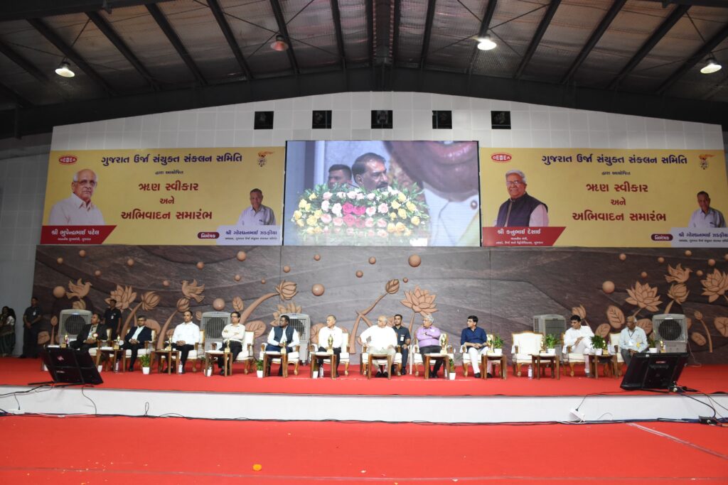 મુખ્યમંત્રી શ્રી ભૂપેન્દ્ર પટેલ તેમજ ઊર્જા મંત્રી શ્રી કનુભાઈ દેસાઈની પ્રેરક ઉપસ્થિતિમાં અડાલજ ત્રિમંદિર ખાતે ગુજરાત ઊર્જા સંયુક્ત સંકલન સમિતિ દ્વારા ઋણ સ્વીકાર અને અભિવાદન સમારોહ યોજાયો હતો.
