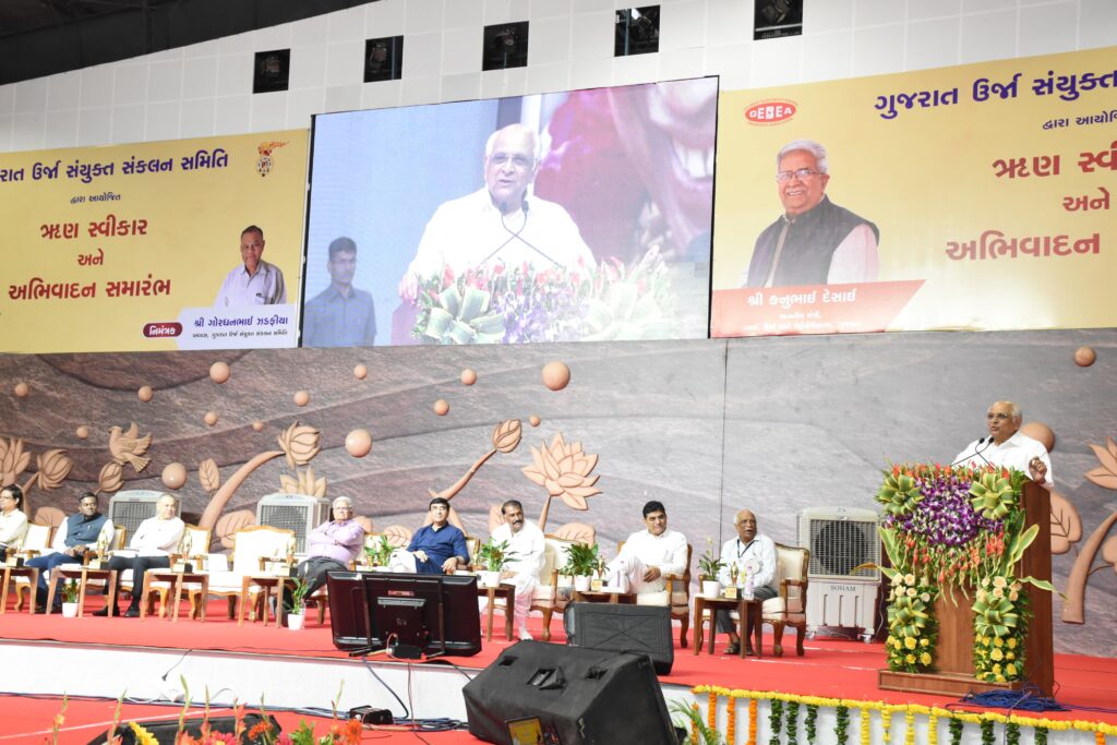 આ પ્રસંગે ગુજરાત ઊર્જા સંયુક્ત સંકલન સમિતિના અધ્યક્ષ શ્રી ગોરધનભાઈ ઝડફીયાએ જણાવ્યું હતું કે, ગુજરાતનો વિકાસરથ આજે જે ઝડપથી આગળ વધી રહ્યો છે તેનું સંપૂર્ણ શ્રેય વડાપ્રધાન શ્રી નરેન્દ્રભાઈ મોદી અને તેમની વિઝનરી લીડરશીપ ને જાય છે. વડાપ્રધાનશ્રીએ ગુજરાતના મુખ્યમંત્રી તરીકે લીધેલા અનેક નિર્ણયોને પરિણામે આજે ગુજરાત વિદ્યુત ક્ષેત્રે દેશમાં મોડલ સ્ટેટ બન્યું છે. સમય સાથે ગુજરાત પણ ટેકનોલોજી અનુસાર પરિવર્તનો લાવતું ગયું અને આગળ વધતું રહ્યું છે, પણ અટક્યું નથી.