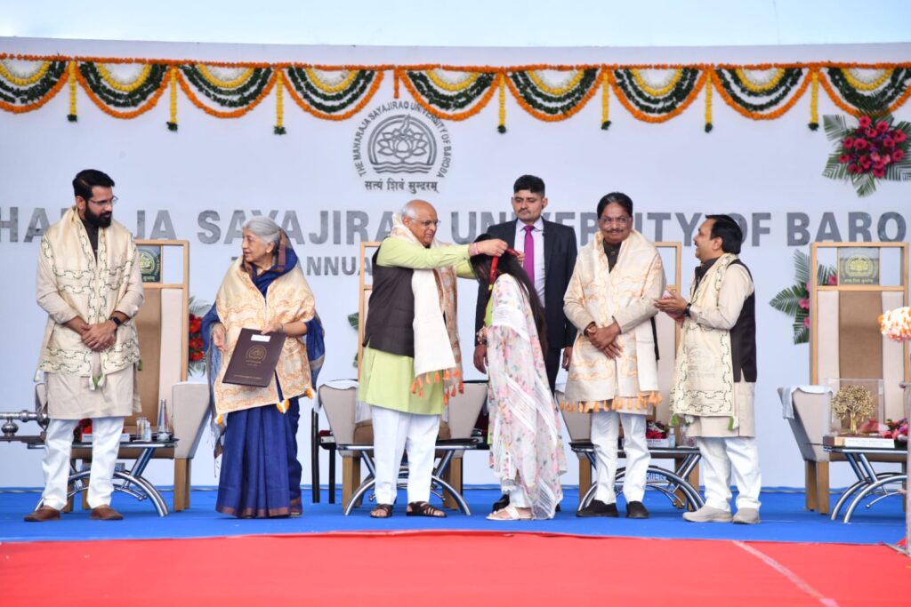 મહારાજા સયાજીરાવ યુનિવર્સિટી ઓફ બરોડાના ૭૨માં પદવિદાન સમારોહમાં કુલ ૨૩૧ વિદ્યાર્થિનીઓ અને ૧૧૩ વિદ્યાર્થીઓ મળી કુલ ૩૪૫ સુવર્ણપદકો મુખ્યમંત્રીશ્રી અને મહાનુભાવો દ્વારા અર્પણ કરવામાં આવ્યા હતા. સાથે તેમણે યુનિવર્સિટી દ્વારા પ્રકાશિત પુસ્તકનું વિમોચન પણ કર્યું હતું.